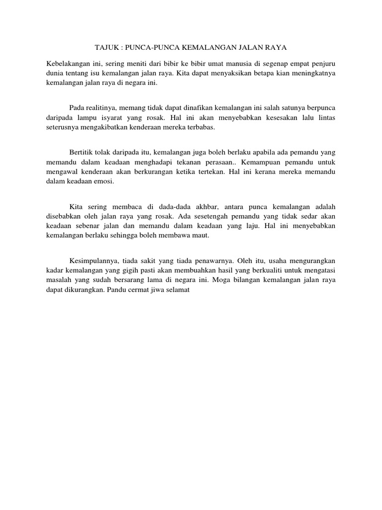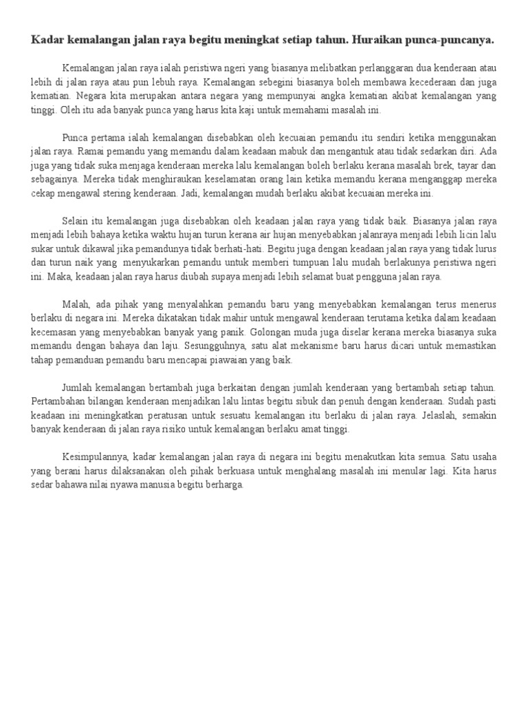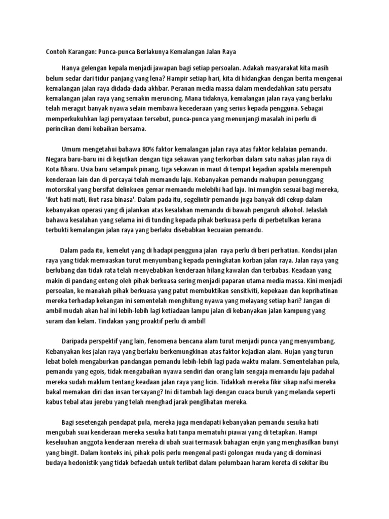 Karangan Punca Berlakunya Kemalangan Pdf